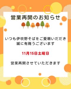 いつも伊吹野そばをご利用いただき誠にありがとうございます。